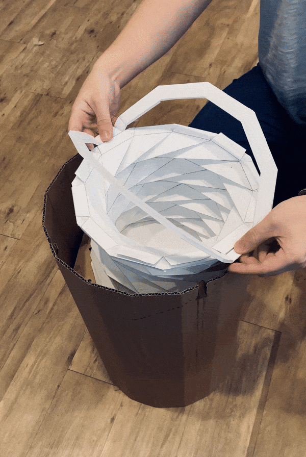 A dodecagon shape was chosen for the bin because it fits the shape of the bag which was derived from the origami pattern.